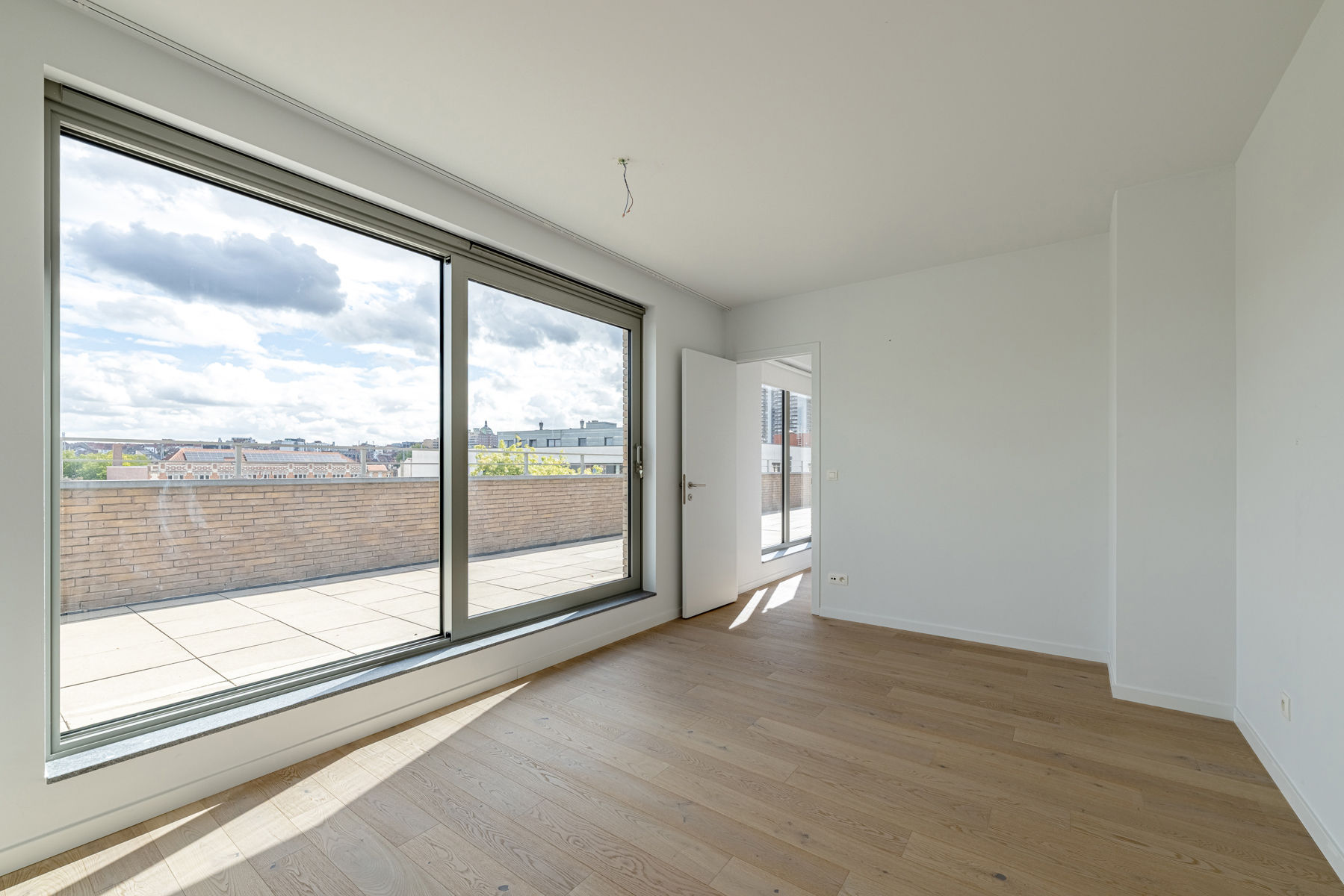 BRUSSELS - CANAL - HELIPORT Magnificent 2-bedroom PENTHOUSE with approximately 110m² of living space in perfect condition in a building constructed in 2020. 85m² of sublime terraces on the top floor and on either side of the flat, offering an exceptional, bright and particularly quiet and private setting in the dynamic centre of the capital. Close to the Brussels business centre, the canal and the UP-site tower, as well as all possible amenities (shops, restaurants, museums, etc.). The neighbourhood is easily accessible from the centre by car or public transport. The apartment, which is recent, is laid out as follows: entrance hall, living room (±36m²), open-plan kitchen (±9m²) fully equipped with bar, hallway with separate toilet, bathroom (bathtub), shower room and two large bedrooms (±16 and ±11m²) opening onto the terraces. There is a private cellar in the basement. Optional parking spaces available Secure access, EPC C, dual-flow ventilation, double-glazed aluminium window frames, private gas condensing boiler, compliant electricity, insulated roof, lift, reinforced door. Planning enquiry in progress.